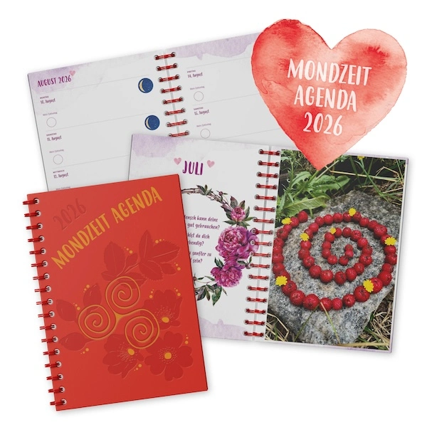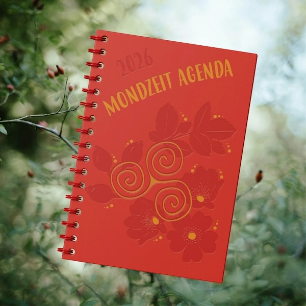 Die Zyklusexpertin-Buschreiberin-und-Frauenversammlerin-Josianne aus der Schweiz hat auch dieses Jahre wieder eine wunderschöne, extrem praktische und poetische Zyklusagenda entworfen. Ein kleines Wunderwerk, dass dich das ganze Jahre begleitet 🙂